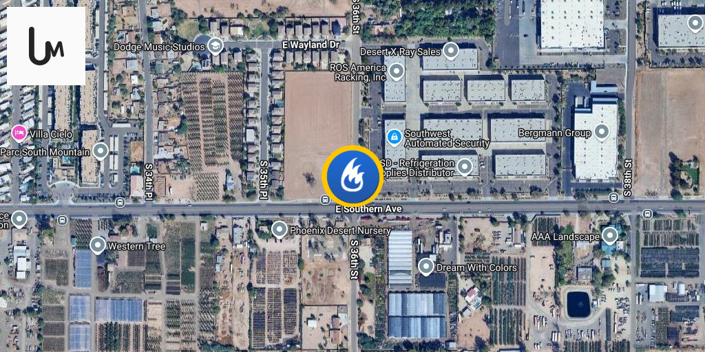 Crews were dispatched around 1:30 am to the area of 36th St. and Southern Ave. for reports of a fire at a nursery. Crews arrived on the scene to heavy smoke and fire to a large nursery complex. Firefighters secured multiple water supplies and extended hose lines to the fire